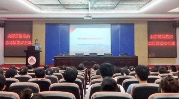 4月16日,校常务副校长周勇军以《全面贯彻落实总体国家安全观》为题,为生命科学与化学学院师生讲授国家安全知识课,引导师生爱国、励志、求真、力行,提升师生维护国家安全的自觉性和主动性,增强师生防范和抵御安全风险能力。各二级学院组织教职工开展主题学习活动,辅导员利用晚点名、主题班会,通过观看“千万师生同上一堂国家安全教育课”公开课、学习典型案例、PPT展示等形式开展主题教育,向学生普及维护国家总体安全的重要性。自宣传教育活动开展以来,学校累计开展各类主题教育10余场,覆盖人数3000人次。
