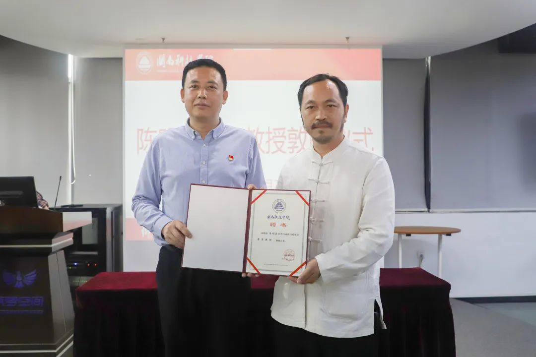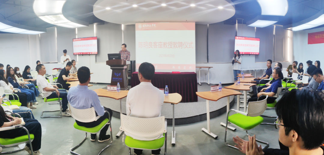4月20日上午,我校举行讲座教授敦聘仪式,聘任中国工艺美术大师陈明良担任艺术设计学院产品设计学科讲座教授。校领导李旭、相关职能部门负责人、艺术设计学院师生代表参加敦聘仪式。敦聘仪式由艺术设计学院副院长徐俊东主持。