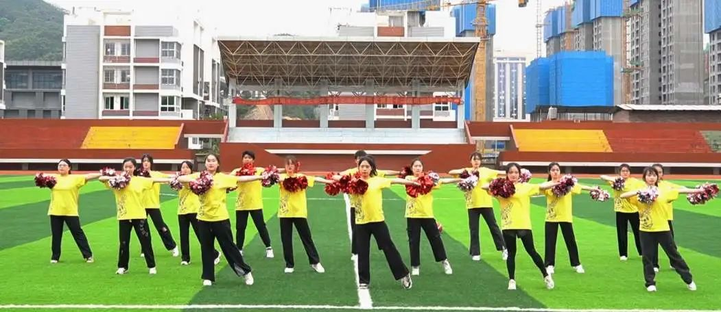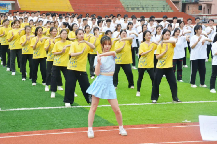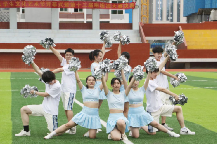 4月26日下午,我校举办第十一届大学生文化艺术节开幕式暨第十二届啦啦操大赛决赛。副校长邱永渠,相关职能部门负责人、各二级学院党总支书记,以及2022级全体学生参加活动。