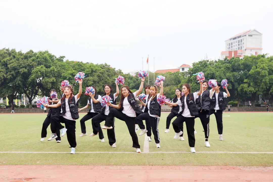 啦啦操齐舞现场,氛围热烈,各二级学院啦啦操代表队登台亮相,赛出风采,绽放闽科学子青春风采。