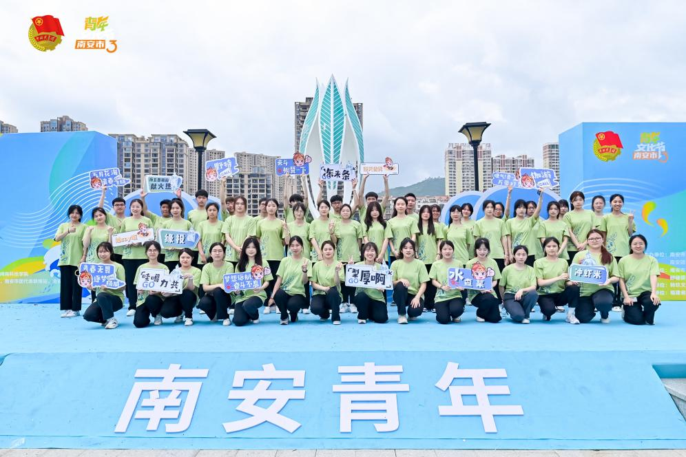南安市第三届青年文化节“发现城市之美”青年文化趣味定向挑战赛在南安市武荣公园举行,人文学院50名学生参演快闪表演合唱,他们以嘹亮的歌声唱响《奔跑的青春》,创新融合了街舞等年轻人喜闻乐见的时尚元素,充分展现了新时代青年的朝气与活力。