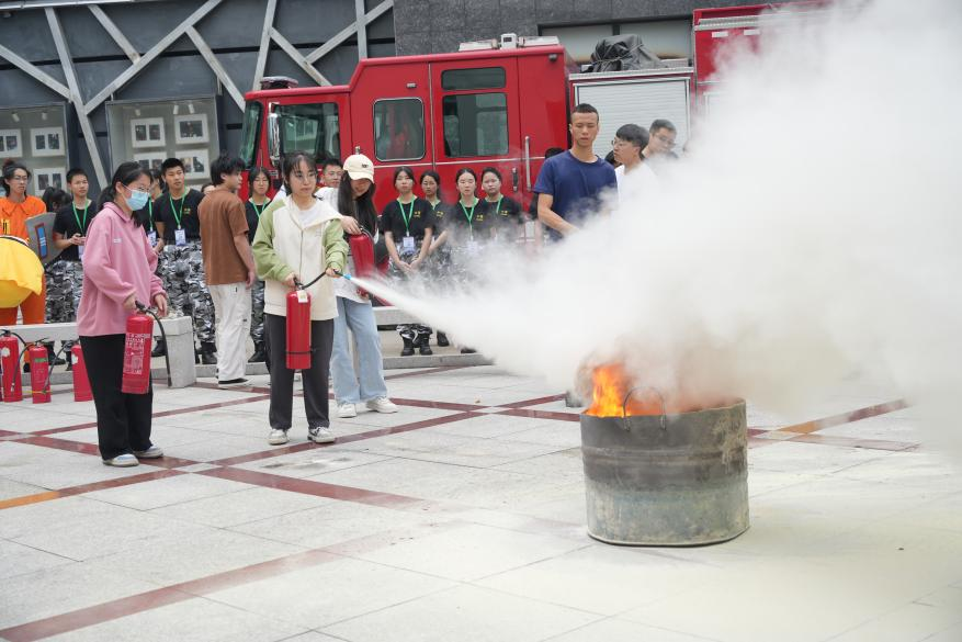 演练现场,师生代表参与模拟演练电路老化、过载引燃实验室内易燃物、油盆灭火演练等场景,学习了消防器材使用,以及防火、救火、火灾后逃生自救等消防常识。