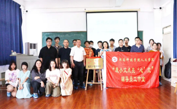 揭牌仪式上,校党委副书记林树生与校关工委副主任、人文学院心理学专业王希华教授共同为“蓝天心理咨询室”揭牌。