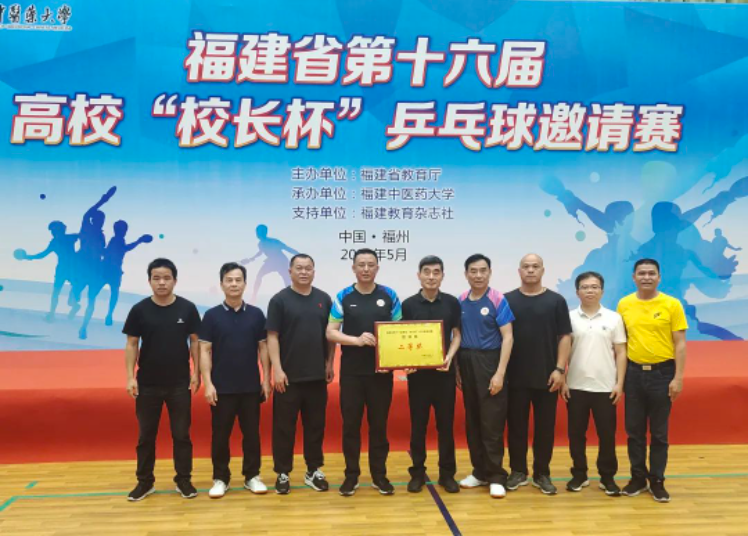 5月27日—28日,福建省第十六届高校“校长杯”乒乓球邀请赛在福建中医药大学举行。我校首次组队参加团体比赛。经过激烈角逐,我校获得团体二等奖(排名第一)和组别个人单打第七名的好成绩,为学校争得了荣誉。