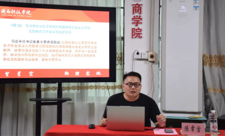 学院党总支书记陈章宫作题为《习近平新时代中国特色社会主义思想在福建的孕育和实践》的主题党课,教育同学们要坚守初心,担当使命,争做有理想、敢担当、能吃苦、肯奋斗的新时代青年。