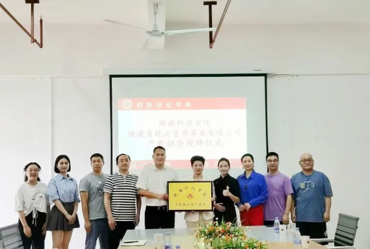 9月14日下午,我校与福建省龍尖壹号茶业有限公司共建产教融合实训基地并举行授牌仪式。福建省龍尖壹号茶业有限公司董事长李丽娟,我校常务副校长周勇军,以及创新创业学院、商学院相关负责人参加授牌仪式。