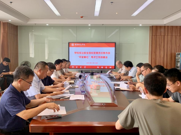 近日,我校召开学校综治安全目标管理责任暨市级“平安单位”考评工作部署会。校领导游小波、李旭、周勇军,校长助理王育海,各相关职能部门、物业公司及食堂负责人参加会议。