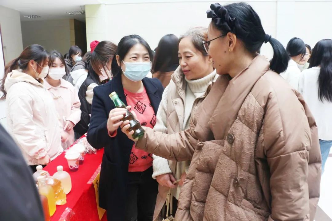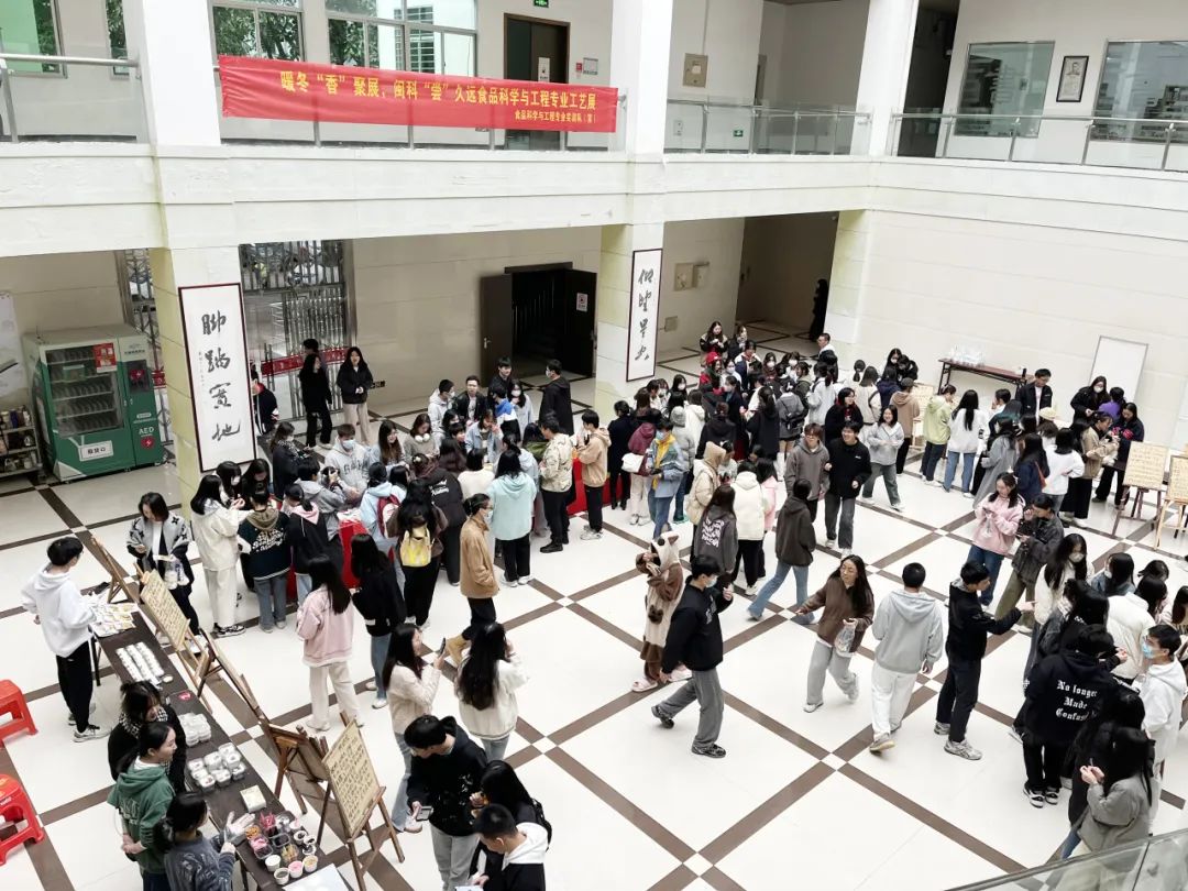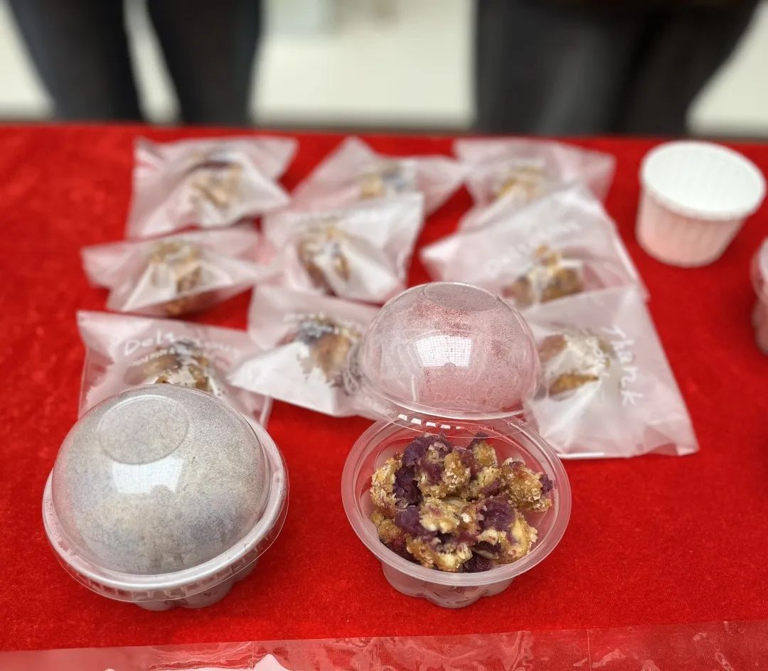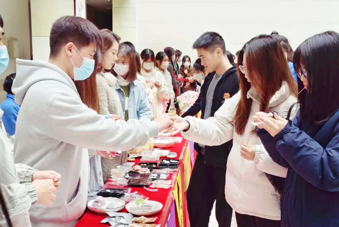 12月20日下午,我校生命科学与化学学院开展食品工艺实训成果展示活动。流心麸皮小蛋糕、薯泥板栗牛乳、紫薯牛奶布丁、鸡胸肉球紫薯、芝芝银呷香肠……30余款自制特色美食,吸引广大师生驻足品鉴。