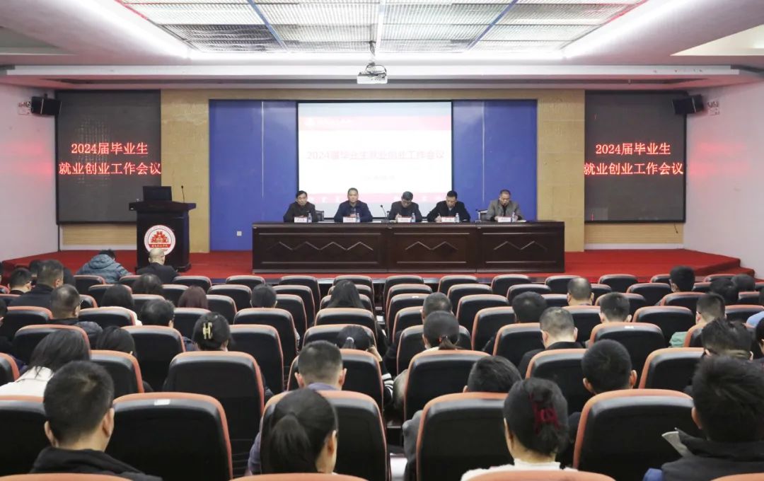 校党委书记李旭全面总结了我校2023年毕业生就业创业工作完成情况,分析研判了我校2024年毕业生就业创业工作面临的新形势新任务,并就做好2024年毕业生就业创业工作进行了安排部署,他要求,一要提高政治站位,增强抓好工作的责任感紧迫感,要充分认识做好2024届毕业生就业创业工作的重要意义,准确把握毕业生就业工作面临的机遇和挑战,坚定做好毕业生就业创业工作信心;二要压实责任,增强推进工作的系统性协同性,要继续强化协调统一的工作体系,持续深化群策群力的全员机制,持续加强“四到位”的条件保障;三要优化举措,增强指导服务的精准度有效性,要有质有量积极拓展岗位资源,做深做实持续优化指导服务,千方百计妥善做好引导转化,用心用情落细落实兜底帮扶;四要抢抓时间,扎实做好期末寒假期间就业工作,结合寒假暖心行动,确保寒假期间就业服务不断线,持续为毕业生就业提供优质服务,进一步推动供需精准对接;五要坚守底线,坚持实事求是讲究工作方法促就业,严格落实“四不准”“三不得”要求,以高标准全力以赴促进2024届高校毕业生更加充分更高质量就业。