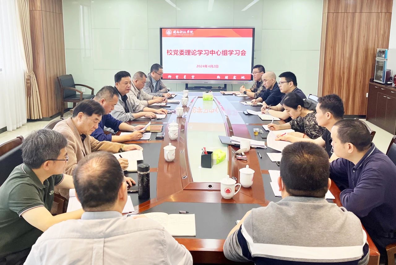 4月2日,我校召开党委理论学习中心组学习会,专题学习习近平总书记在全国两会期间重要讲话和全国两会精神、习近平总书记在湖南考察时重要讲话精神、习近平总书记在2023年二十届中央政治局第九次集体学习时重要讲话精神和2024年第3期《求是》杂志重要文章精神。党员校领导、校长助理、校党委委员,相关职能部门负责人参加学习会。校党委书记李旭主持学习会并作总结讲话。