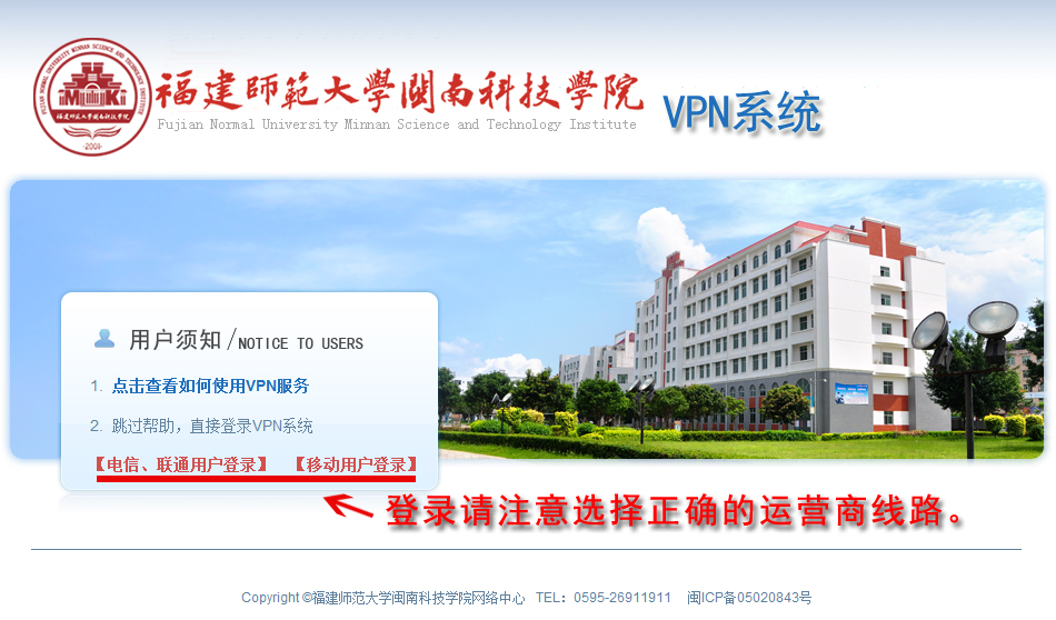 SSL-VPN系统使用说明和注意事项请参照登录页面的使用帮助。教师工号请自行到QQ群【闽科_教师交流群】下载查看。使用过程中如有问题,可与网络中心联系获取技术支持。联系电话:26911911